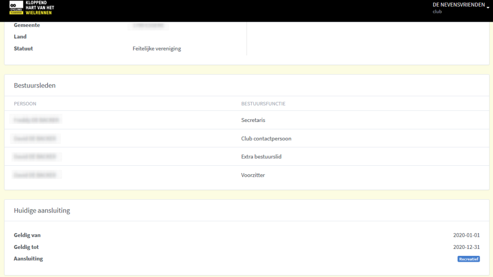 Helemaal onderaan de pagina krijg je info over de aansluiting bij Cycling Vlaanderen.