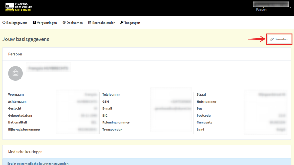 Om de persoonsgegevens aan te passen, klik je op Bewerken