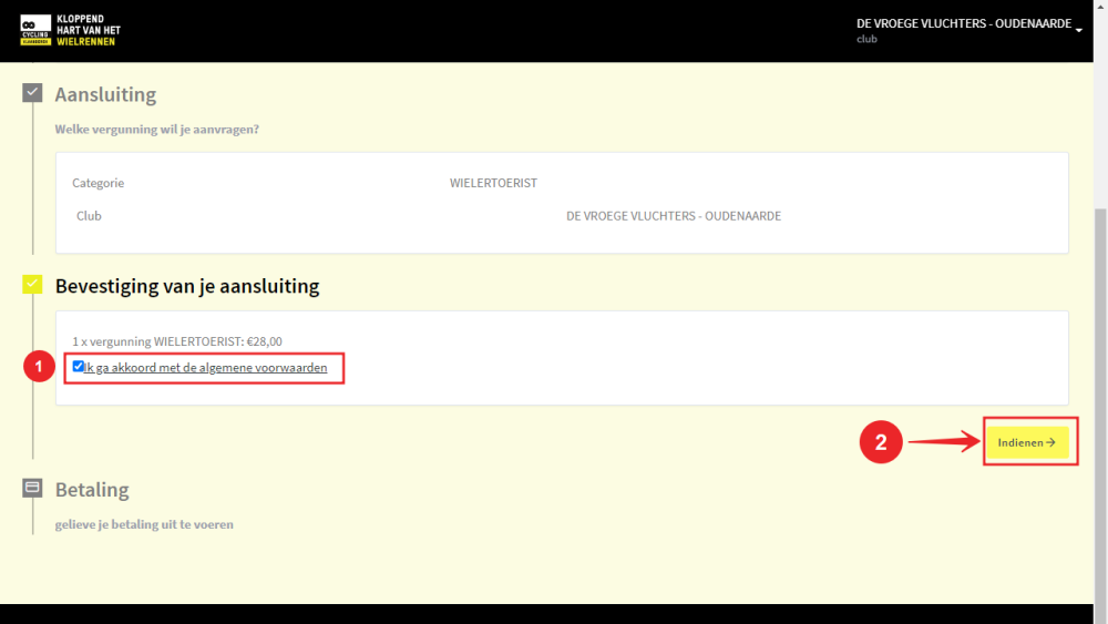Verklaar je akkoord met de algemene voorwaarden en klik op indienen.