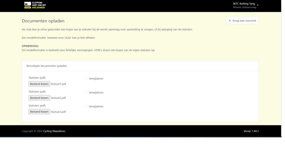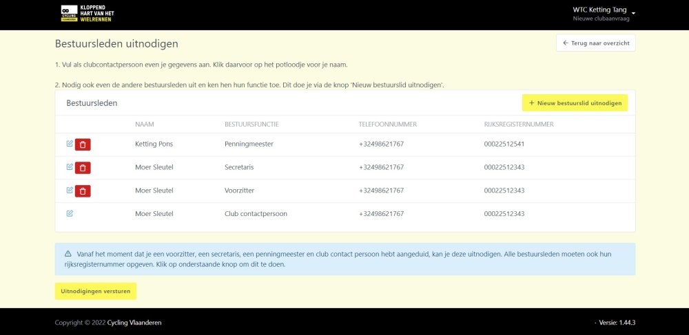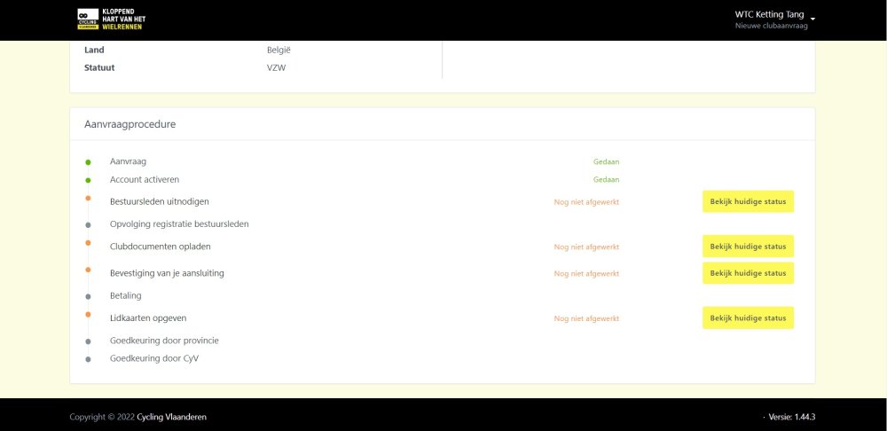 Opmerking! Dit maakt de club-beheerder niet automatisch lid bij Cycling Vlaanderen. Je bent pas lid bij Cycling Vlaanderen nadat je betaald hebt voor een lidmaatschap.