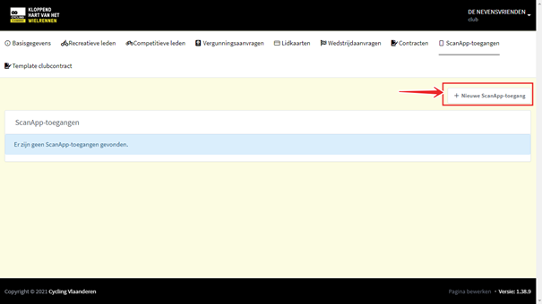 2. De clubverantwoordelijke klikt op ‘Nieuwe ScanApp-toegang’.